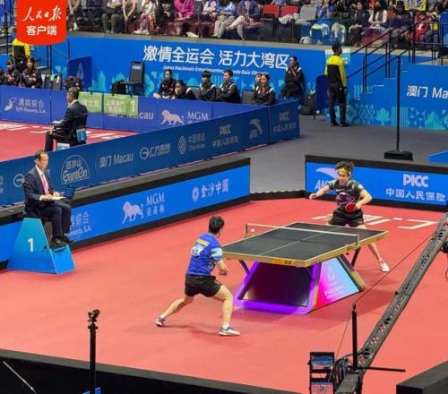 据人民日报客户端消息,11月15日,十五运会乒乓球项目在澳门银河综艺馆展开两场男单半决赛争夺。
