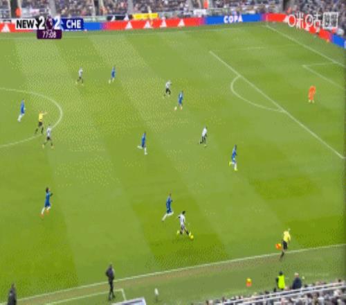 第77分钟,纽卡打出一次配合精妙的反击,里斯-詹姆斯就迅速拉近了与巴恩斯之间的距离,并完成了一次完美的铲球,迫使球出底线。