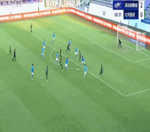 第33分钟,埃杜-加西亚传中,韦斯利门前轻松推射得手,新鹏城2-0领先国安!