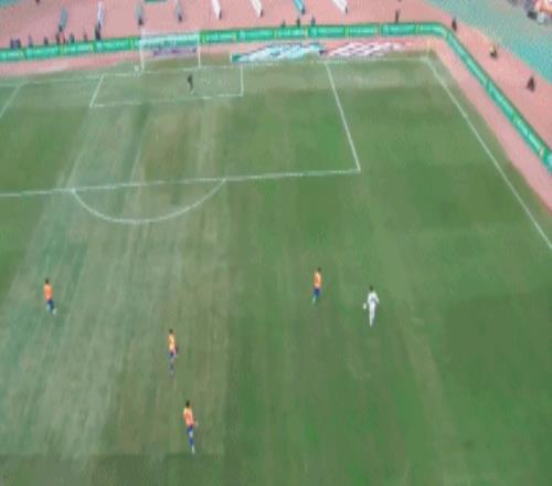 比赛的第8分钟,海港快速反击,莱昂纳多中路分球,刘若钒右路精准横传,李新翔右脚扫射破门,1比0!
