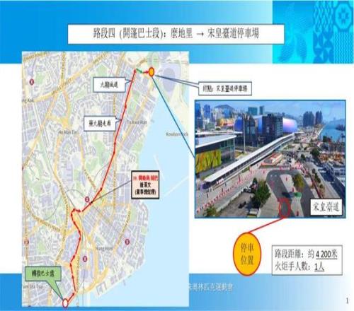 第四段火炬手乘坐开篷巴士至香港启德体育园巴士站;进入第五段启德体育园范围,途经青年运动场,进入启德体育大道至启德体育园中央广场,由最后一名火炬手点燃火盆,并进行收火仪式。