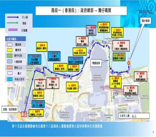 澳门站火炬传递路线全长约2.6公里,起点设在澳门特区政府总部,终点设在大三巴。澳门站火炬传递路线突出“中西文化交流窗口”的城市特色,将在澳门半岛进行,途经澳门旅游区,不仅串联了澳门多个具有代表性的历史文化地标,更生动展现了澳门作为中西文化交汇点的独特魅力。无论是沿途的建筑、街道还是人文风貌,都体现出澳门城市历史的多元与包容,充分展示了中西文化的深度融合与和谐共存,体现澳门多元和谐的城市精神。