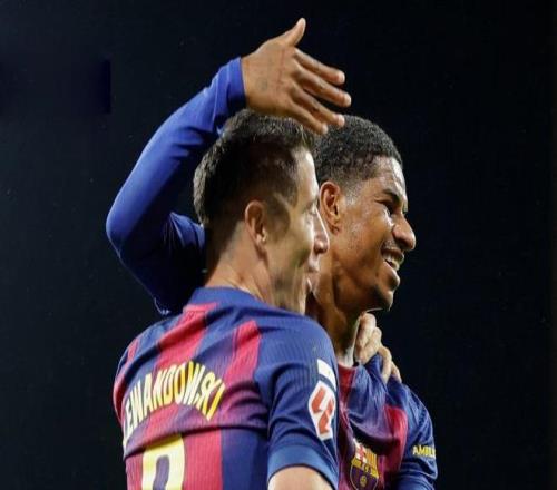 第24分钟,亚马尔前场抢断,巴塞罗那迅速组织起一波强有力的攻势,费尔明推射被挡出,随即拉什福德补射击中立柱弹出,跟上的莱万再射又被门将扑出!第37分钟,比分再次被改写,拉什福德一个简单的边路传中,莱万插上推射破门,1:2!巴塞罗那再次将比分超出。